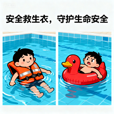 插图建议:画一幅孩子在泳池里模仿小鸭子划水,家长在一旁微笑监护的卡通图;或者是展示正确与错误漂浮物对比的图片,突出安全救生衣的重要性。