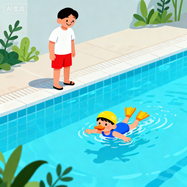 插图建议:展示孩子在游泳课程中认真学习的图片,教练手把手指导;或者是家长在泳池边 “伸手监督” 孩子游泳的场景图。