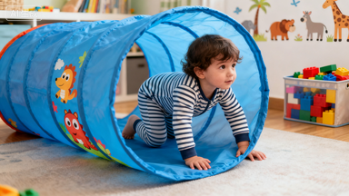 隧道是障碍路线中的经典项目。没有现成的儿童隧道也无需担心,用一排椅子搭建爬行通道,或者卷起游戏垫用胶带固定,就能轻松拥有属于孩子的冒险隧道。