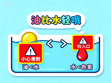 - 操作亮点:把染色的油倒进水里,色素会像雨点般下沉,形成 “水下烟花”。建议用透明玻璃杯,从侧面观察更震撼(密度对比:油<水,色素>油)。