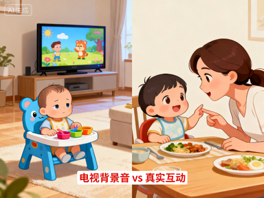有研究给出了明确证据:当 2 岁左右的孩子在吃饭时频繁暴露于电视背景噪音中,等到他们进入幼儿园年龄,语言智商水平会出现统计学上的显著下降。为什么会这样?关键在于语言本质是 “社会互动产物”—— 宝宝需要的是真实人类的交流,而不是电视里单向输出、没有回应的声音。