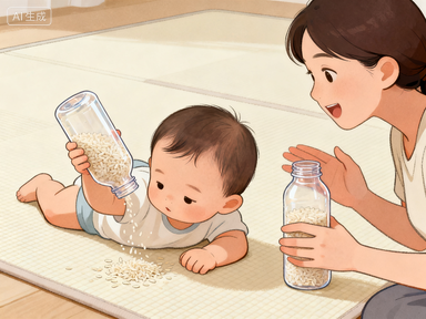 - 小提醒:瓶盖一定要封紧,避免米粒漏出来呛到宝宝;每次玩完要收好,别让宝宝啃咬瓶盖。