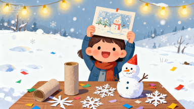 - 低龄娃:剪圆形彩纸当 “雪片”,贴在白纸上做 “雪景画”;卷纸筒粘个圆脑袋,画成雪娃娃、小企鹅;