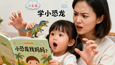 我发现 “读” 不如 “演”:读《小恐龙找妈妈》时,我捏着嗓子装小恐龙的委屈音,又压低声音学霸王龙的 “凶巴巴”;讲到 “恐龙跳河”,还会抱着女儿轻轻晃,假装 “在水里漂”。