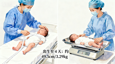 出生至 4 天:新生儿平均身长约 49.5 厘米(19.5 英寸),平均体重约 3.29 公斤(7.25 磅)。刚出生后几天,宝宝可能因 “生理性体重下降” 轻一点,家长不用慌。