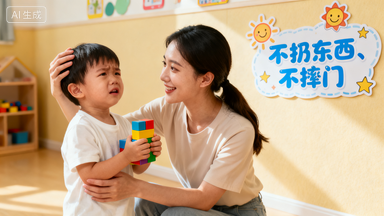 这时候别先指责 “你怎么又摔东西!”,可以先抱一抱他说:“搭不好积木,你是不是很着急、很生气呀?(接纳情绪)” 等他点头,再明确讲规则:“生气是没关系的,你可以跟老师说‘我有点生气,想冷静一下’,但扔积木会砸到小朋友,关房门会吓到大家,这是绝对不能做的哦。”