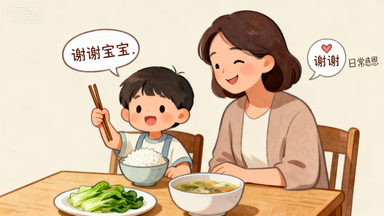 不用搞复杂的 “感恩仪式”,吃饭时说 “谢谢宝宝帮妈妈拿筷子”,出门时说 “今天太阳真好,谢谢天气这么舒服”。