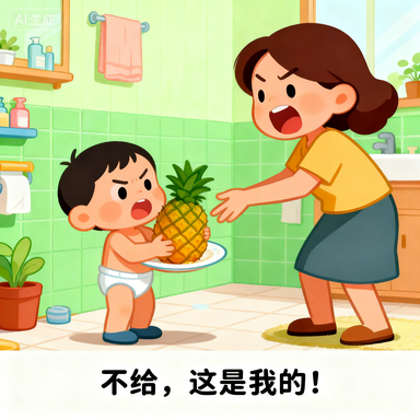 - “我能尝一口吗?”——激发占有欲:如果娃明确说不喜欢某样食物,比如菠萝,你可以用夸张的语气说:“哇,这个菠萝看起来好甜啊!妈妈特别想吃,能不能分我一小块?就一小块!”大多数时候,娃会立刻把盘子拉到自己面前,甚至主动咬一大口:“不行,这是我的!”
