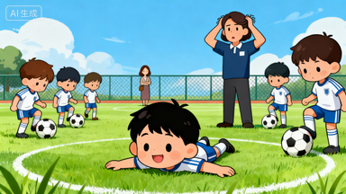 球场上,别的孩子在认真传球,他却趴在草地上玩 “死虫” 游戏;要么披着夹克假装僵尸,慢悠悠地走过草地;最离谱的一次,他直接捡起球跑出球场,头也不回地走了。那一刻我才明白,足球不是他的热爱,只是我被 “社交压力” 绑架后的选择。