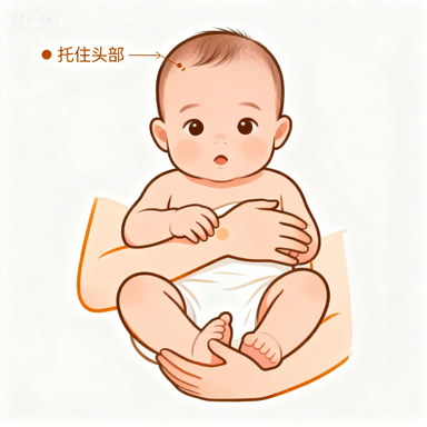 - 家长一手穿过宝宝腋下,托住宝宝的胸部和头部(确保头部有支撑);