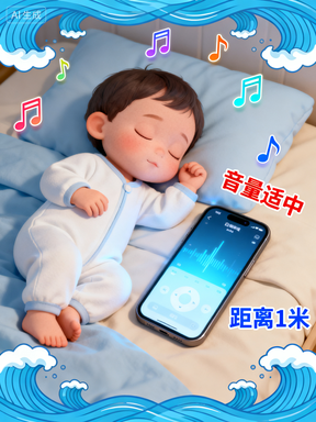 操作步骤:打开手机白噪音 APP(推荐 “雨声”“海浪声”“子宫血流声”“吹风机声”),将音量调至适中(不超过 60 分贝,相当于轻声说话),放在距离宝宝 1 米左右的位置,持续播放 10-15 分钟。