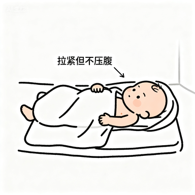 操作步骤:准备一条柔软的纯棉包被,将宝宝平放在包被中央,先把左侧包被拉过宝宝身体,压在右侧身下,再将右侧包被拉紧裹住身体,最后整理脚部,确保宝宝四肢能轻微活动,腹部不受压迫。