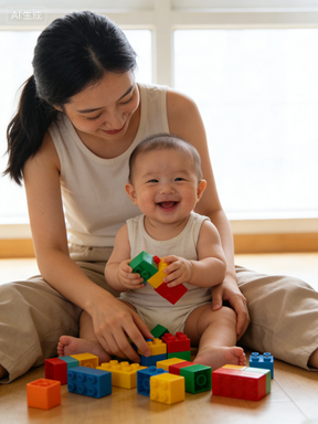 - 拿出宝宝喜欢的玩具(比如会发声的摇铃、柔软的毛绒玩具),和他一起玩 “躲猫猫”“举高高” 游戏;