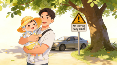 不要让宝宝单独待在车内:哪怕是 1 分钟,夏天车内温度会快速升高到 50℃以上,容易导致宝宝中暑甚至危及生命;