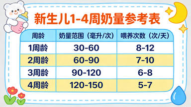 - 喂养频率:新生儿胃容量小(出生时约 30ml),每 1.5-3 小时喂一次,夜间也需喂 3-4 次,每天总喂养次数 8-12 次。