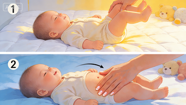 - 每次喂奶后,竖抱宝宝,让宝宝头部靠在家长肩膀上,用空心掌从下往上轻拍后背 10-15 分钟,帮助排出胃内空气。