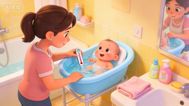 ❌ 误区:水温凭手试 → 成人手掌耐温比宝宝高,容易烫到宝宝娇嫩皮肤,水温计是必备工具。