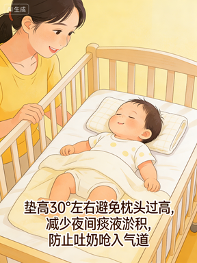 - 家庭护理:喂奶后竖抱拍嗝 15-20 分钟;垫高上半身睡觉;少量多餐,避免一次喂太饱。