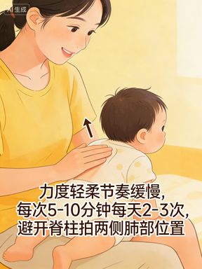 ✅ 拍背排痰:空心掌从宝宝背部下方往上拍,力度轻柔,每次拍 5-10 分钟。