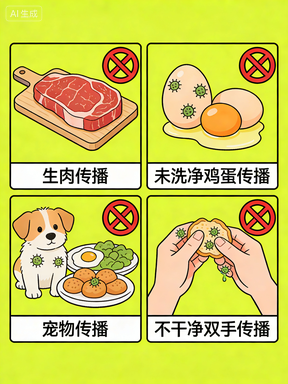 - 警惕感染症状,若出现发热、腹痛、腹泻、呕吐等症状,及时就医,并主动告知医生近期饮食史、动物接触史,切勿自行购买抗生素服用,避免滥用抗生素加重耐药性[1][8]。