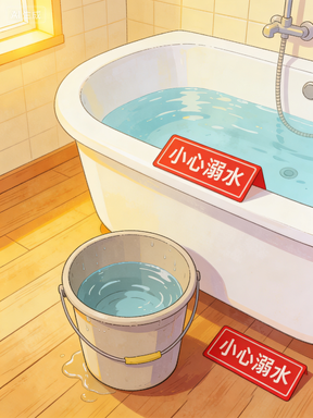 - 不给孩子单独接触任何水域的机会:浴缸放水后及时排空,家里的水桶、脸盆不要装水,阳台、卫生间门窗做好防护,避免孩子攀爬;