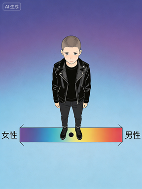 从我有记忆开始,身边的世界就一直在灌输一种观念:性别只有两种,男孩该穿蓝色、玩汽车,女孩该穿粉色、玩娃娃,连衣服款式、行为举止都有严格的 “性别规定”。可我从心底里抗拒这些束缚,除非万不得已,我绝不会穿裙子;我偏爱皮衣夹克,剪利落的短发,把爸爸的纽扣衬衫扎进裤子里;我会刻意压低声音,痴迷滑板、打鼓这些常被贴上 “男性标签” 的爱好,不是为了刻意模仿谁,只是这样才让我觉得舒服、自在。